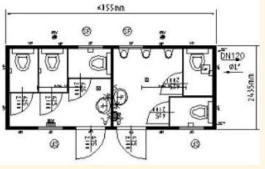 Toiletten: Frauen / Männer Toiletten: Frauen / Herren Toiletten: Damen 3 WC-Kabinen Toiletten: Herren 3 x Pissoir Toiletten: Abmessung 2 x WC-Kabinen